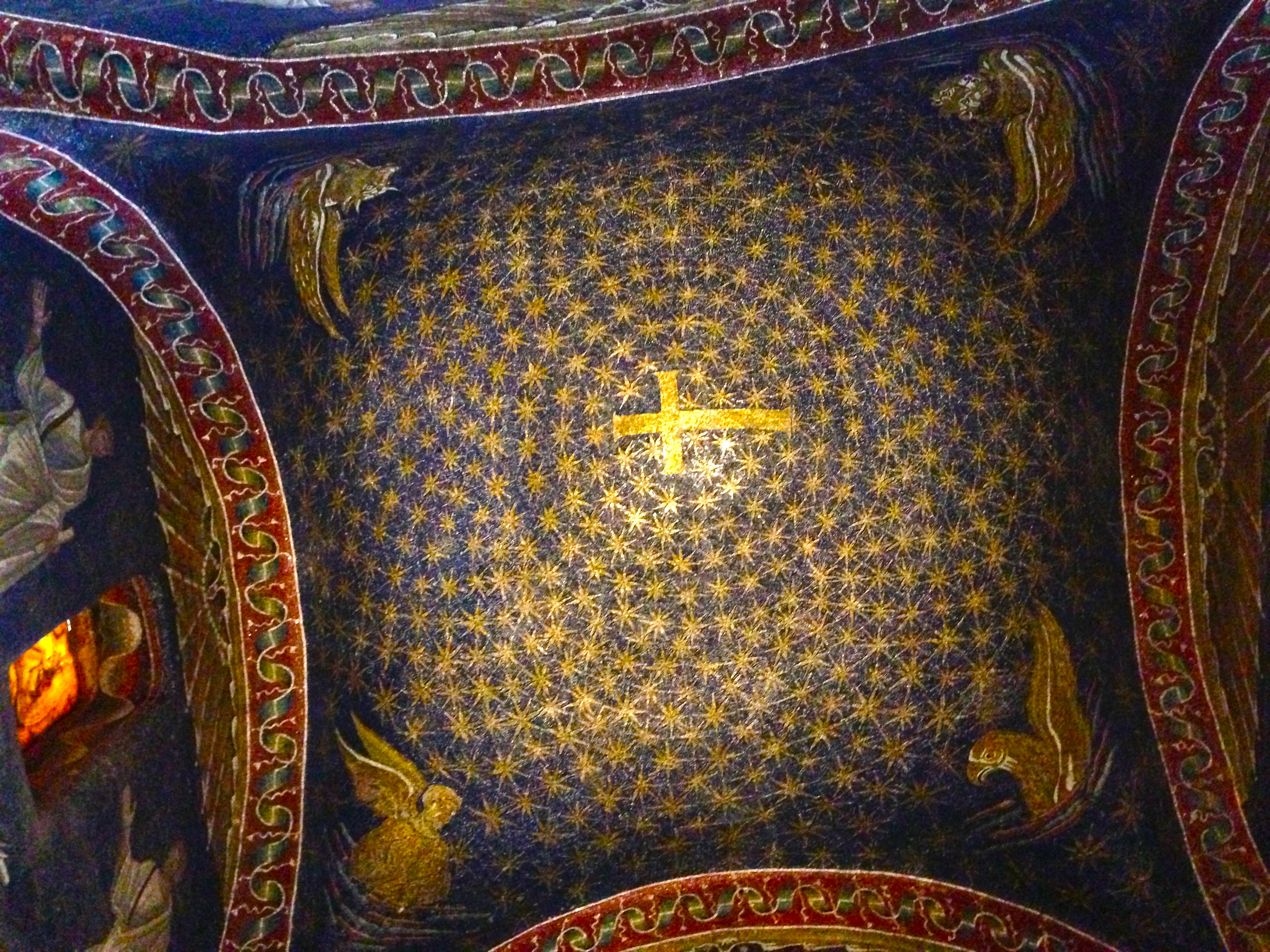 In fact, here is the starry night of the dome–almost heaven.  It is said that Cole Porter was inspired to write “Night and Day” by a visit to the Galla Placidia.