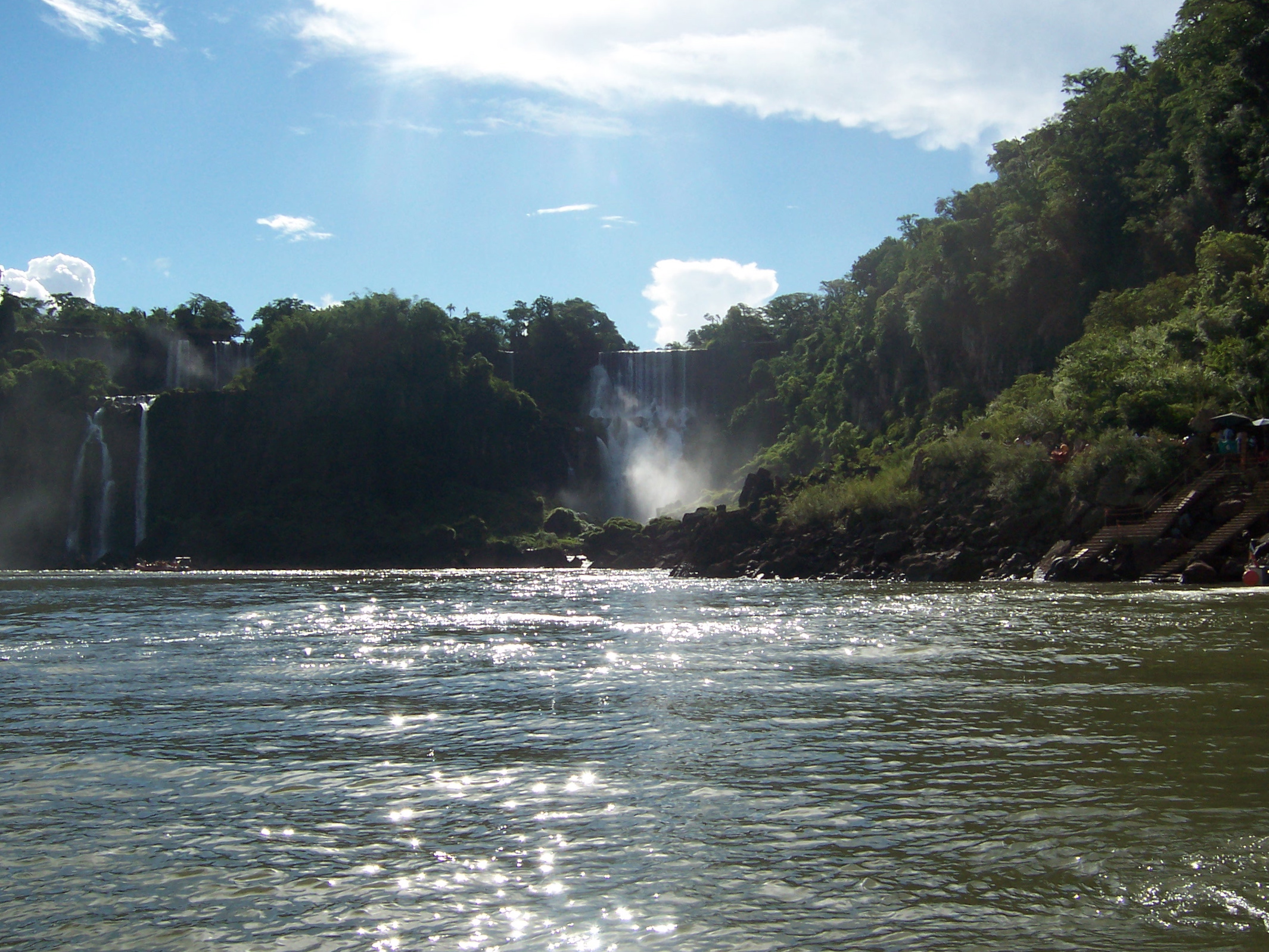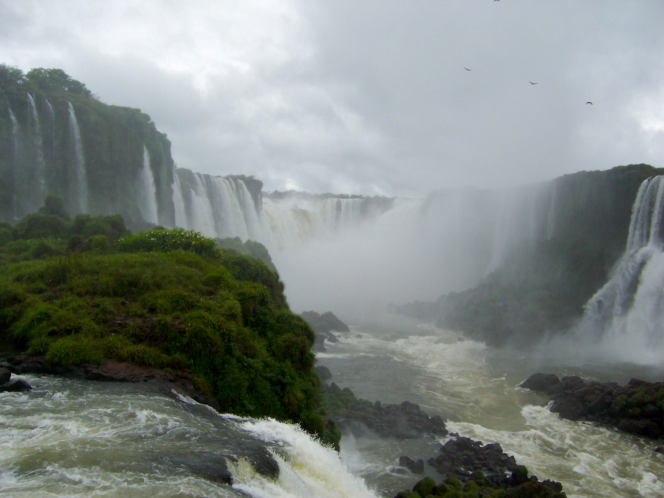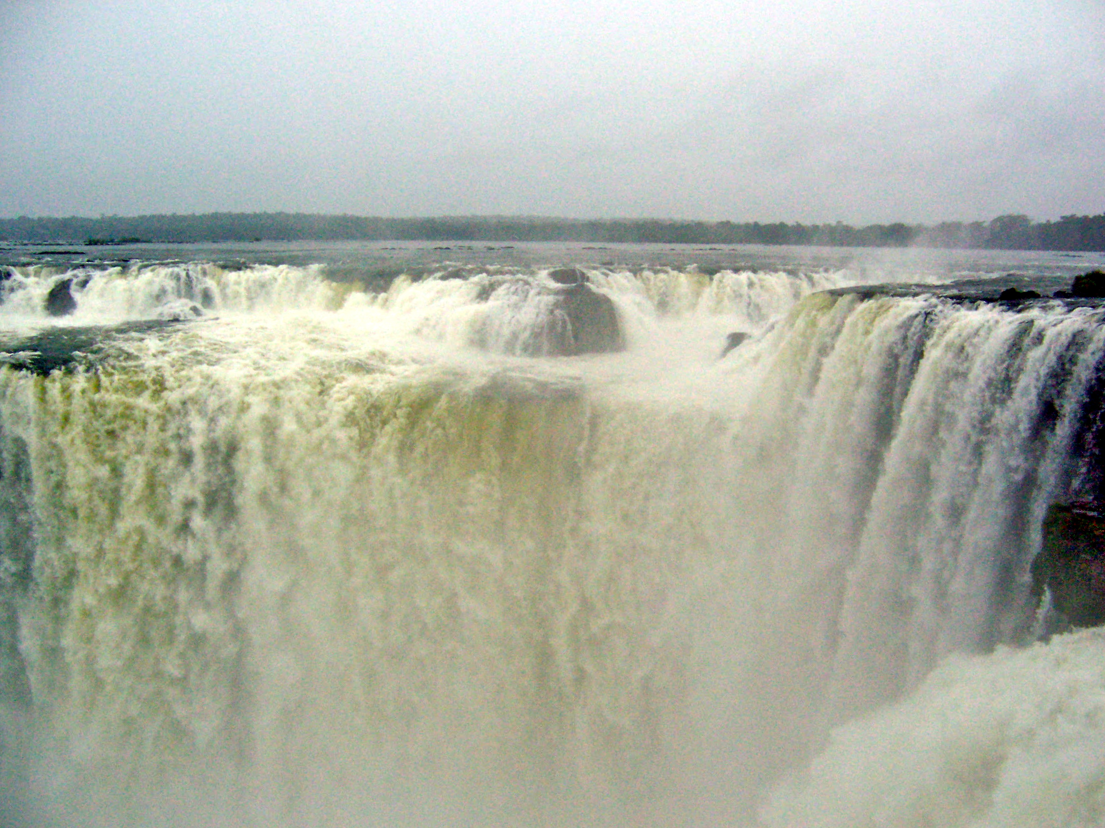 When Eleanor Roosevelt saw Iguassu Falls, she reportedly said, “Oh, poor Niagara!” I can just picture her there in the steamy subtropical jungle with her good wool suit, sensible shoes, gartered hose and pith helmet. In fact, Iguassu Falls is spectacular. The 275 cascades tumble down through black basalt and deep green jungle around a 1.7 mile horseshoe gorge. You can usually spot monkeys, coatis, and capybaras. You can hike through the jungle, ride on the river, and march out over the falls. And everywhere, it is so loud!